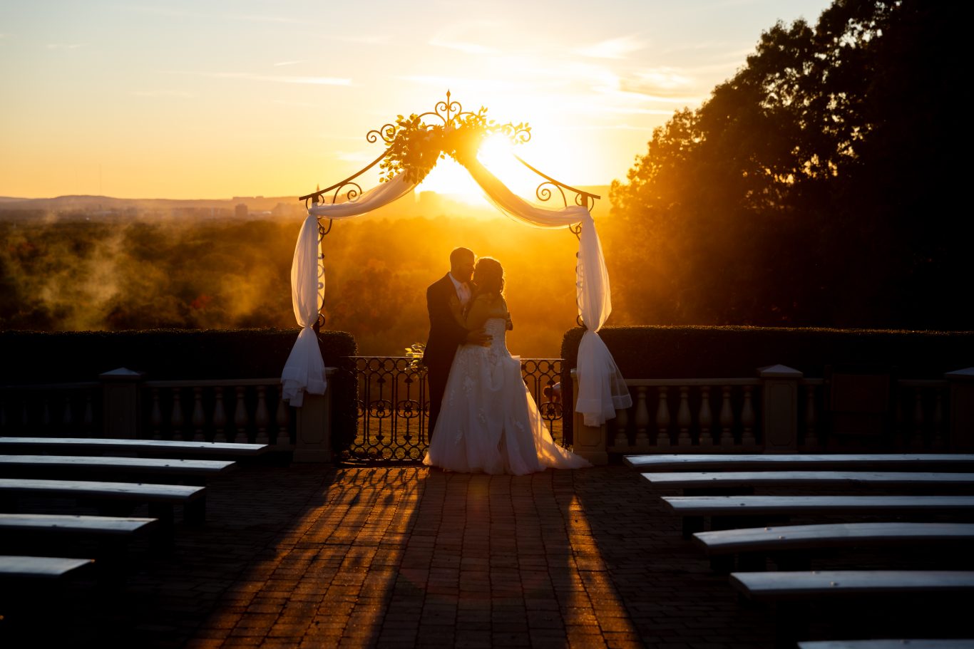 Gorgeous views abound as you enter the gates and continue the drive to the highest point in the 280 acre Park. Guests arrive, take in the spectacular Hartford skyline, wander the hilltop Cabin Garden or even visit our aviary if they please! After you exchange vows, your guests enjoy cocktail hour in the Garden and have the option to watch while your photographer captures memories to last a lifetime.